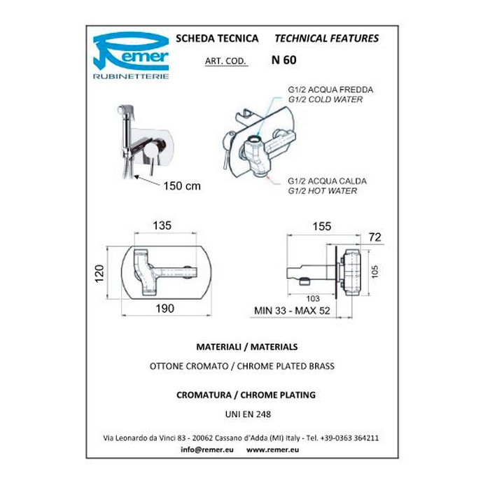 Смеситель гигиенический Remer Minimal N60.