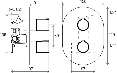 Смеситель Chrome-CR 064.00 термостатический скрытого монтажа с переключателем. Цвет изделия- хром.