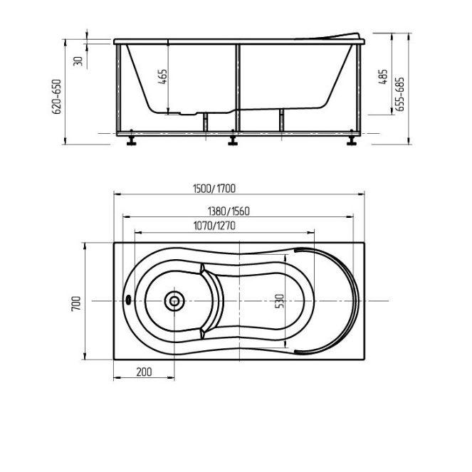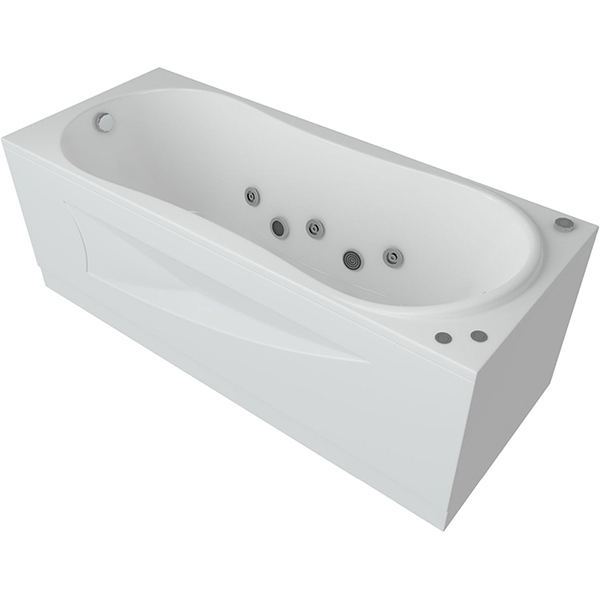 Ванна из литого акрила, армированная. Материал отличается прочностью и имеет гладкую поверхность без пор, что препятствует размножению бактерий и облегчает уход за ванной.