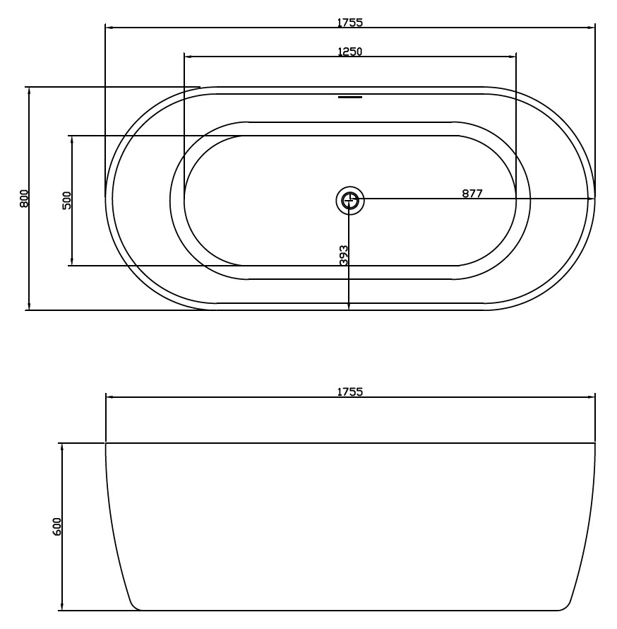 Овальная акриловая ванна с плавными линиями украсит любую ванную комнату.