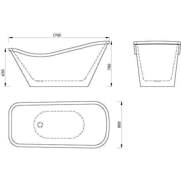 Акриловая ванна Abber AB9231B 170х80 без гидромассажа