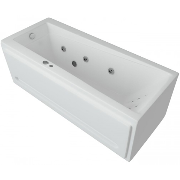 Ванна из литого акрила, армированная. Материал отличается прочностью и имеет гладкую поверхность без пор, что препятствует размножению бактерий и облегчает уход за ванной.