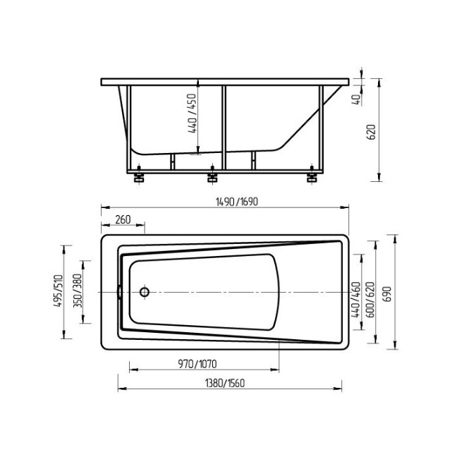 Акриловая ванна Акватек Либра 170x70 без гидромассажа