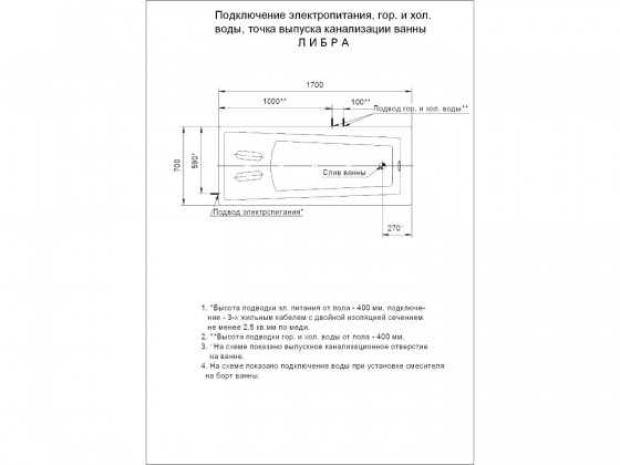 Ванна имеет увеличенную глубину, что позволяет с комфортом расположиться одному или двум людям.