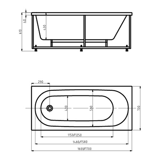 Акриловая ванна Акватек Оберон 160х70.