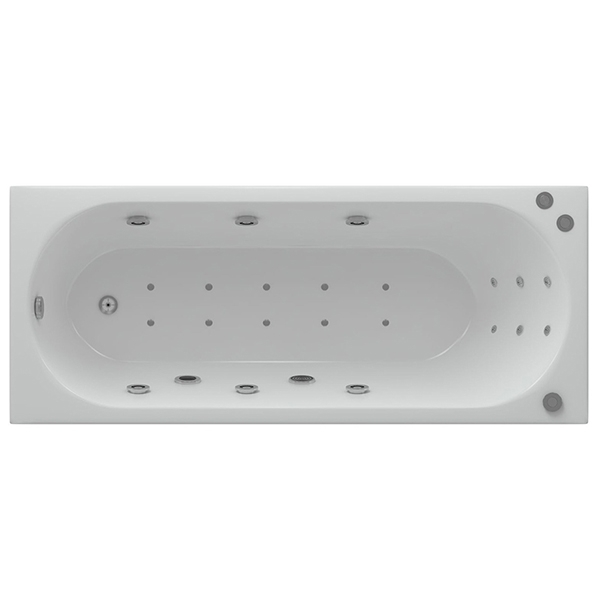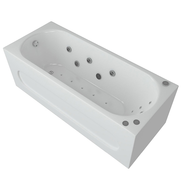 Ванна из литого акрила, армированная. Материал отличается прочностью и имеет гладкую поверхность без пор, что препятствует размножению бактерий и облегчает уход за ванной.