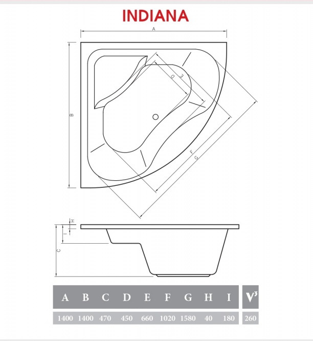 Ванна акриловая Alpen Indiana 140х140.
