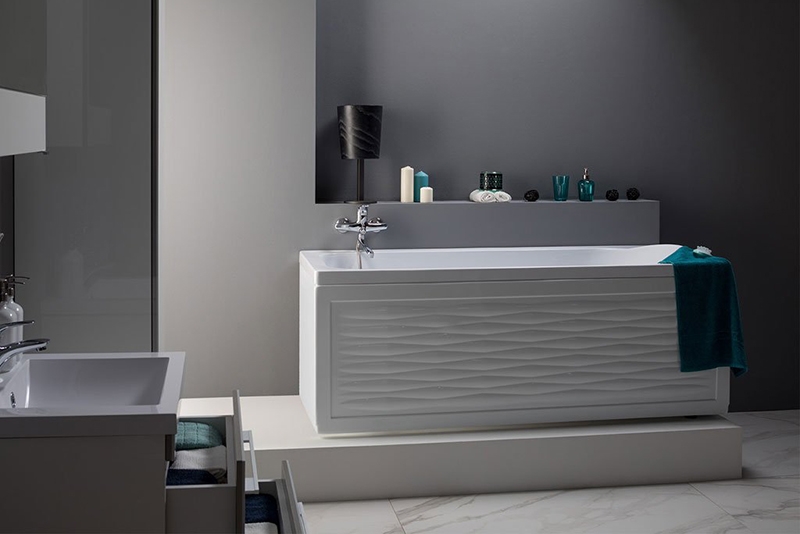 Вместительная ванна с изящным дизайном дополнит интерьер ванной комнаты в современном стиле.