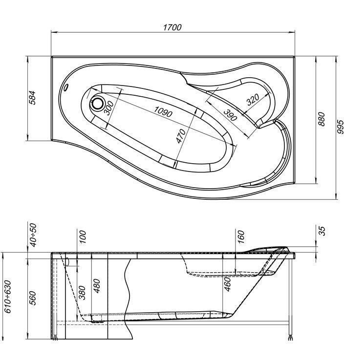 - Изготовлена из качественного акрила: гладкого и теплого на ощупь материала. Он быстро нагревается и долго сохраняет тепло воды. Благодаря отсутствию пор на поверхности не скапливается грязь и микробы.