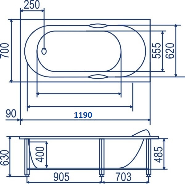 Акриловая ванна Bach Лаура с каркасом в комплекте.