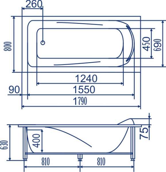 Акриловая ванна Bach Виктория с каркасом в комплекте.