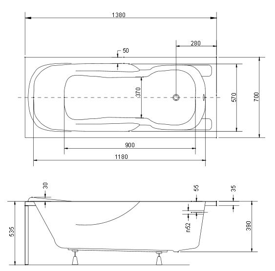 Ванна имеет увеличенную глубину, что позволяет с комфортом расположиться одному или двум людям.