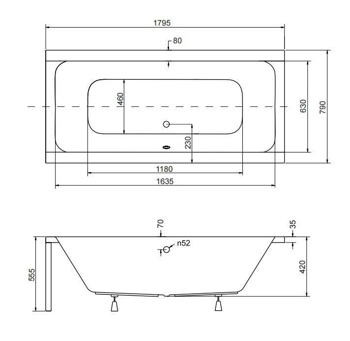Ванна имеет увеличенную глубину, что позволяет с комфортом расположиться одному или двум людям.