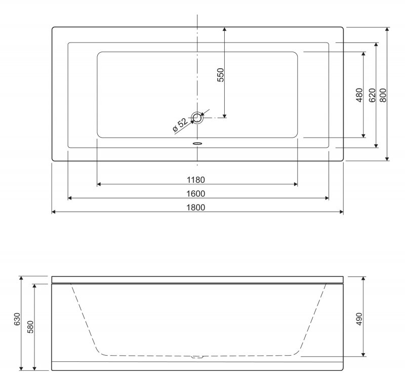Прямоугольная акриловая ванна с плавными линиями украсит любую ванную комнату.