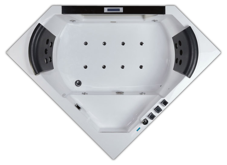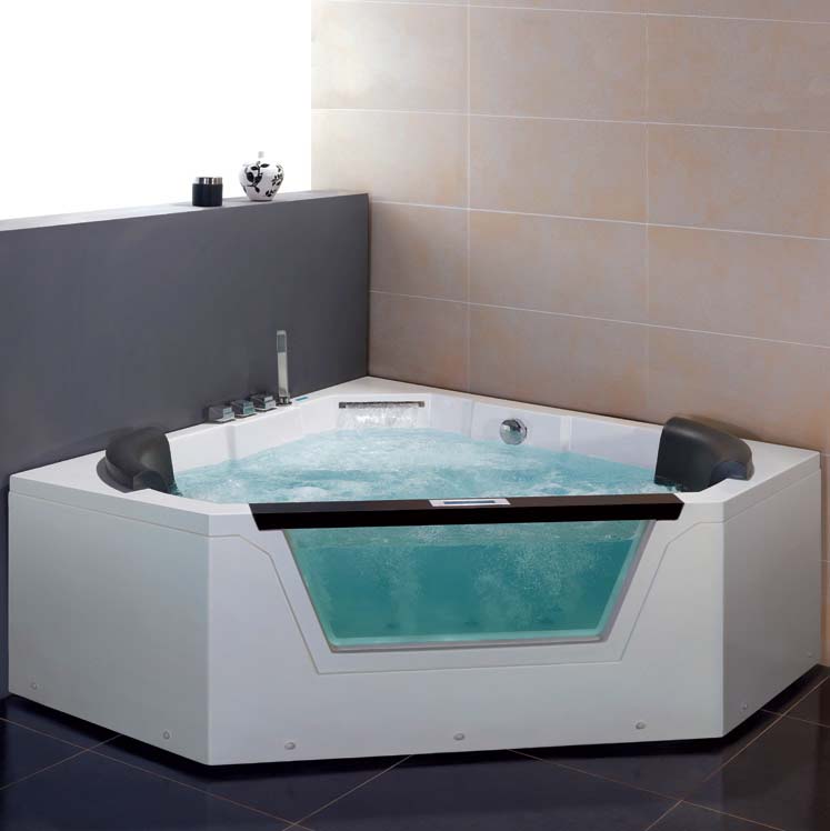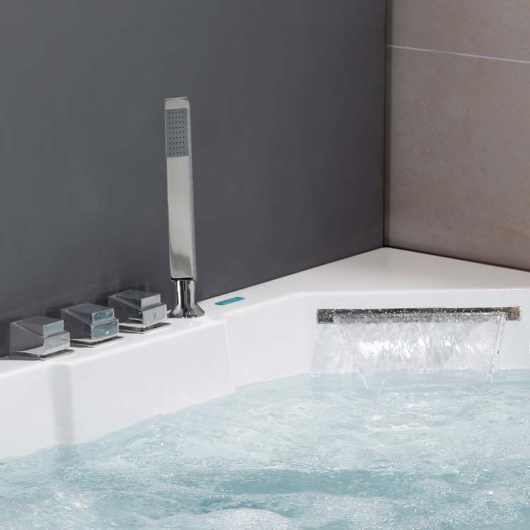 Двухместная угловая ванна с окном Еаgо AM156JDTSZ с гидромассажем. 22 форсунки. Каскадный налив воды. Сенсорная ПУ. Донный гидромассаж.