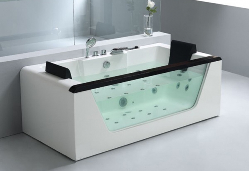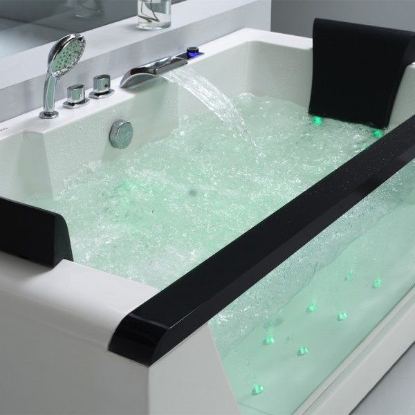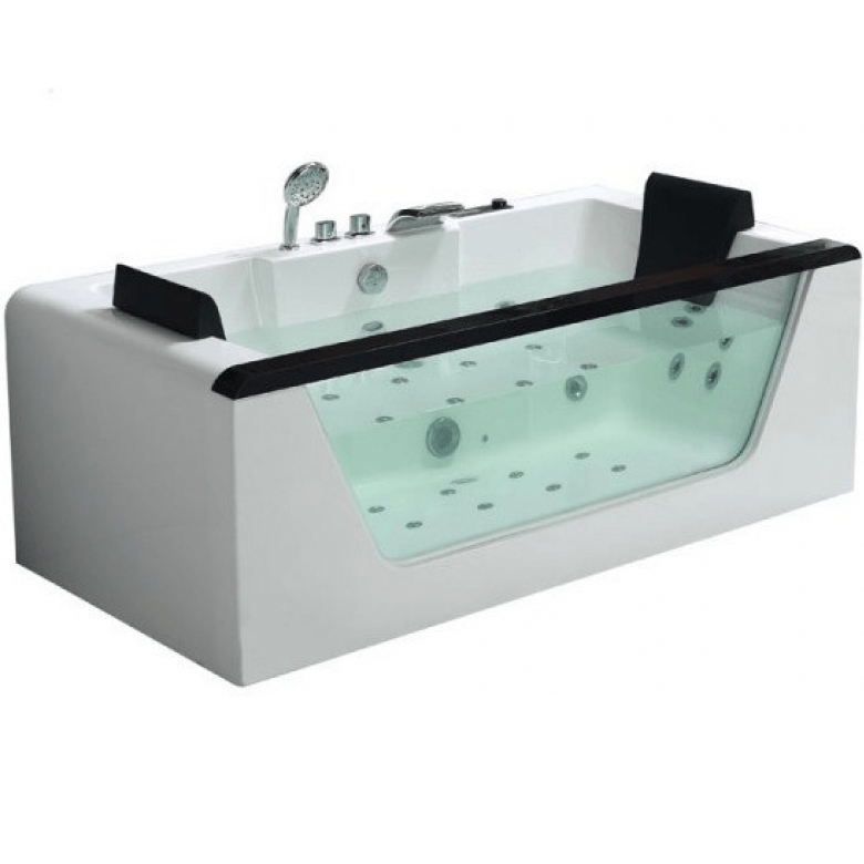 Акриловая ванна Eago AM 196S. В комплекте: 12 гидромассажных форсунок, 8 аэромассажных форсунок, смеситель, радио, хромотерапия, душевая лейка, 2 подголовника, электронная панель управления, датчики уровня воды, монолитный экран.