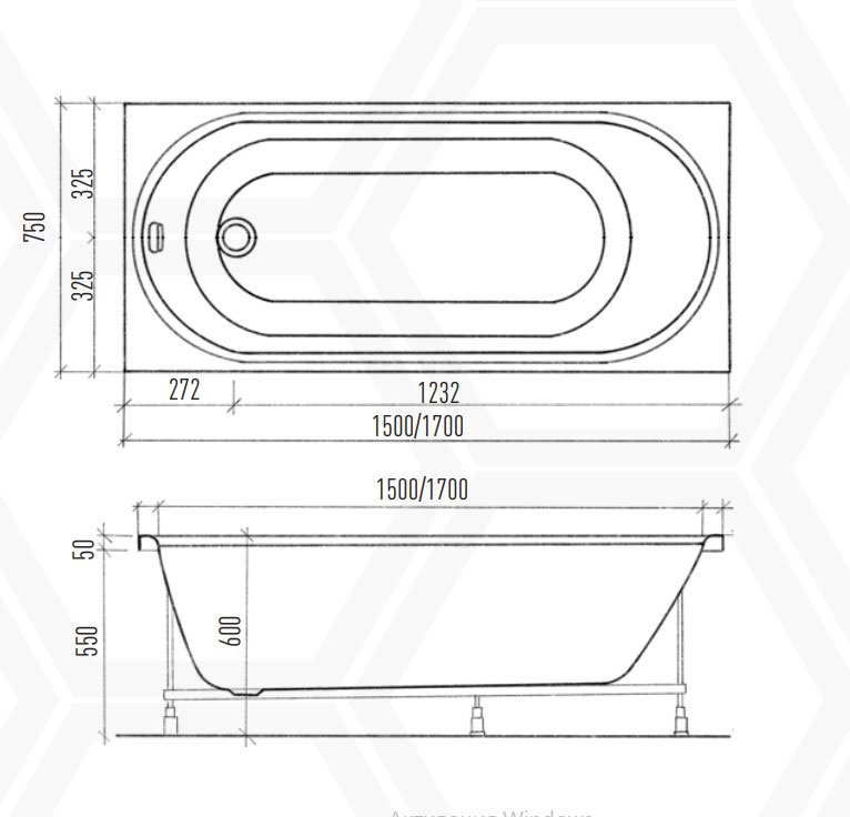 Акриловая ванна Eurolux Bath Oberony 170х75 E1017075025 - абсолютно безвредна, экологически безопасна, очень прочна и, вследствие низкой теплопередачи, долго сохраняет тепло.