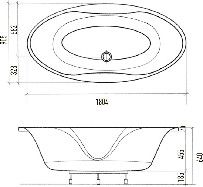 - Габариты чаши (ШхВхД): 905 x 455 x 1804 мм.