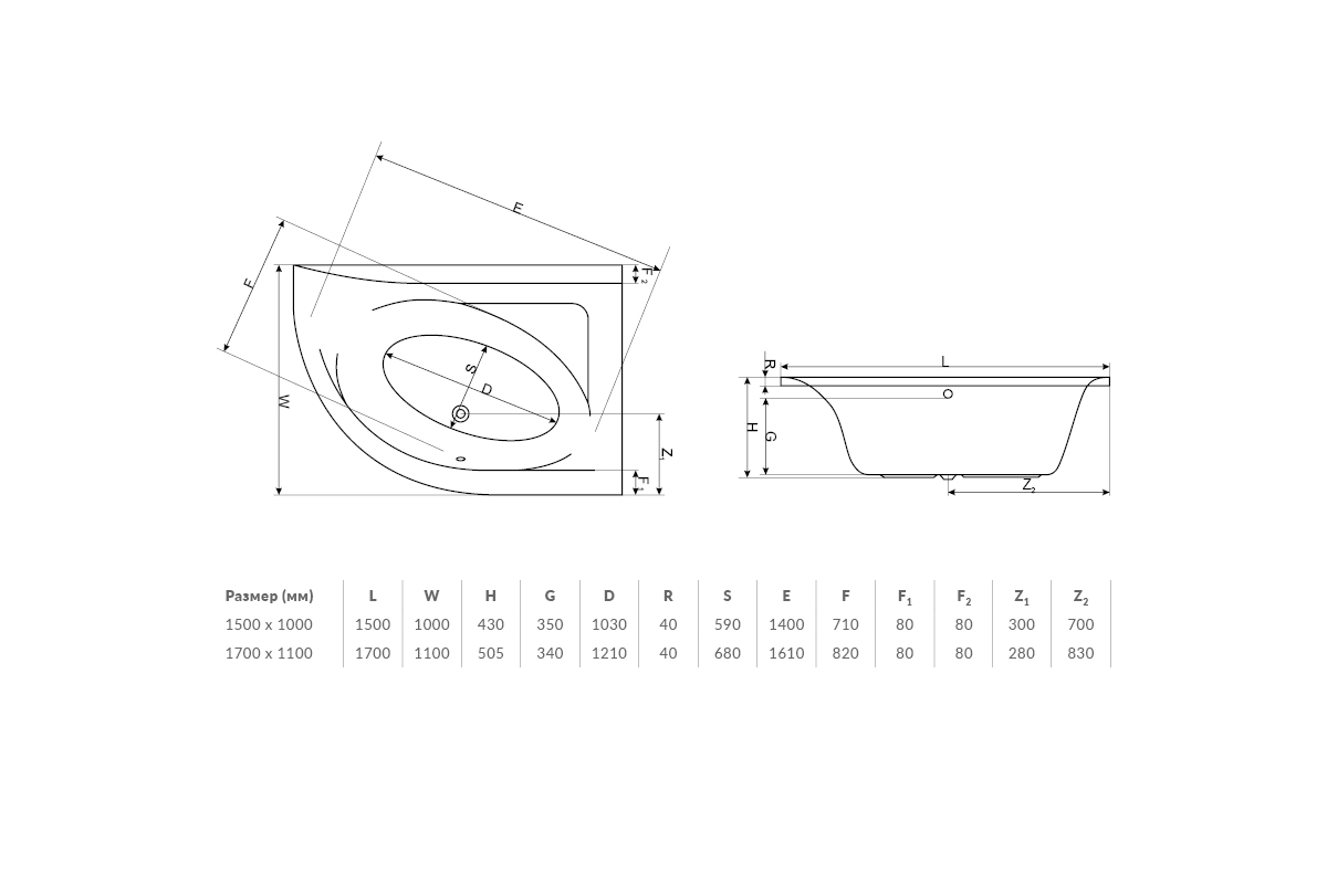 Акриловая ванна Excellent Aquarella 150x100 R без гидромассажа