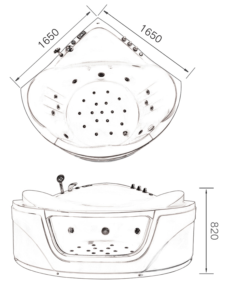 Акриловая ванна Gemy G9247 K 165х165 с гидромассажем