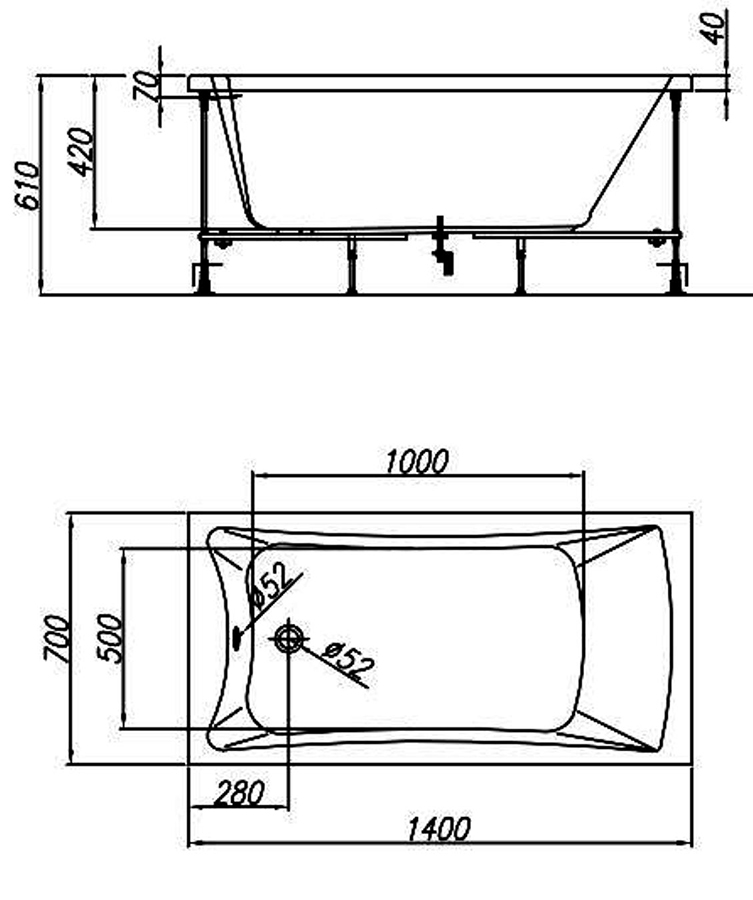 Ванна из литого акрила, армированная. Материал отличается прочностью и имеет гладкую поверхность без пор, что препятствует размножению бактерий и облегчает уход за ванной.