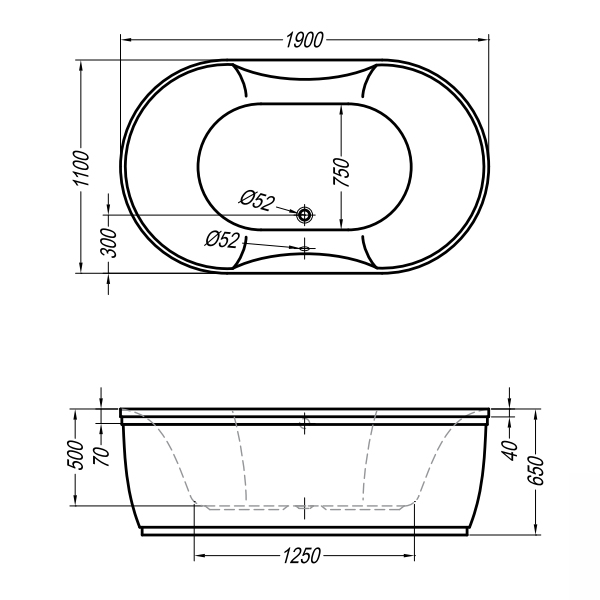Изящная овальная ванна с плавными линиями украсит любую ванную комнату.