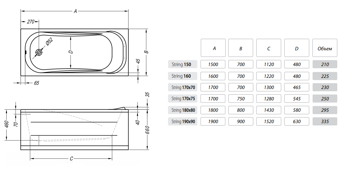Акриловая ванна Kolpa San String 170x70.