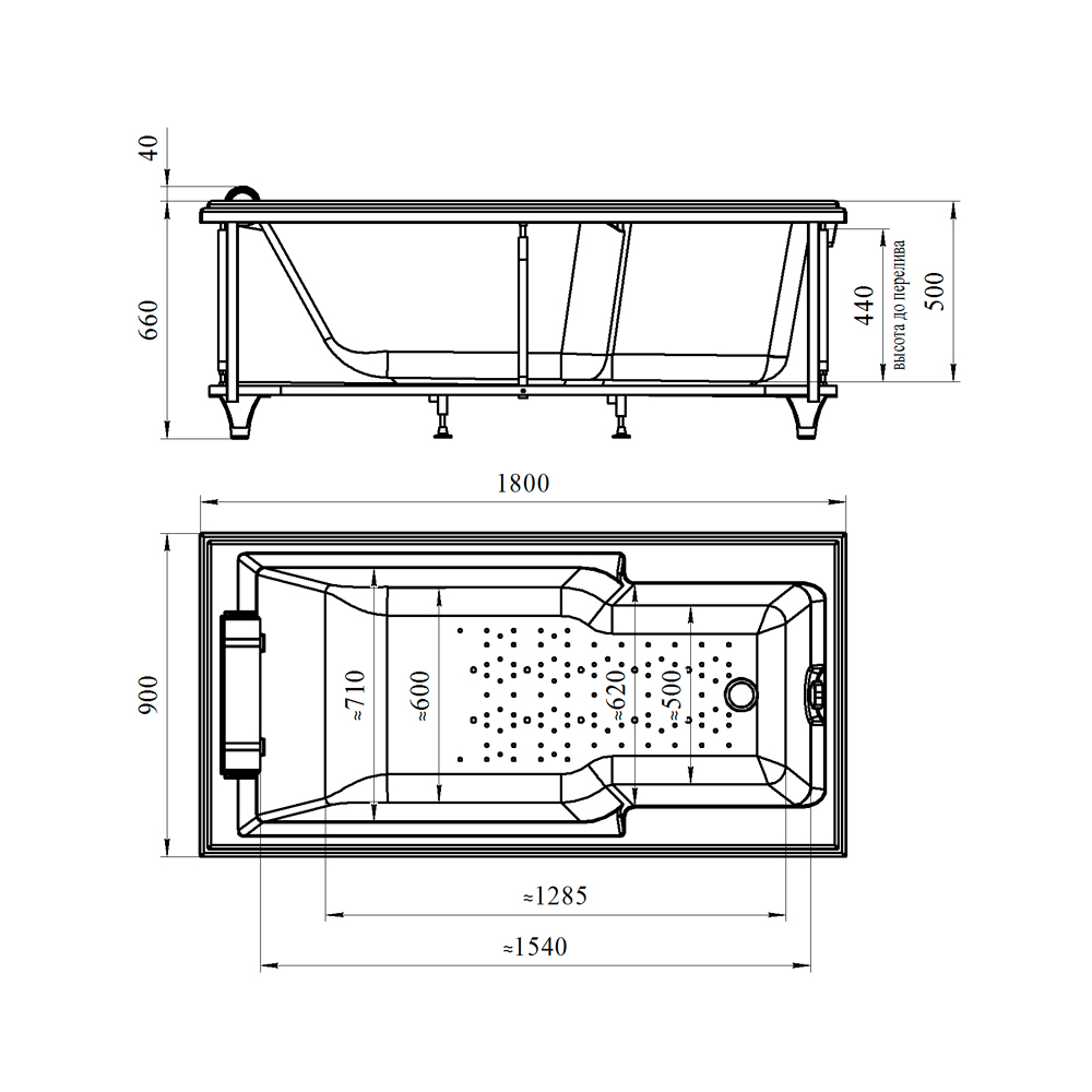 - Усиленная чаша ванны выдерживает до 900 кг нагрузки.