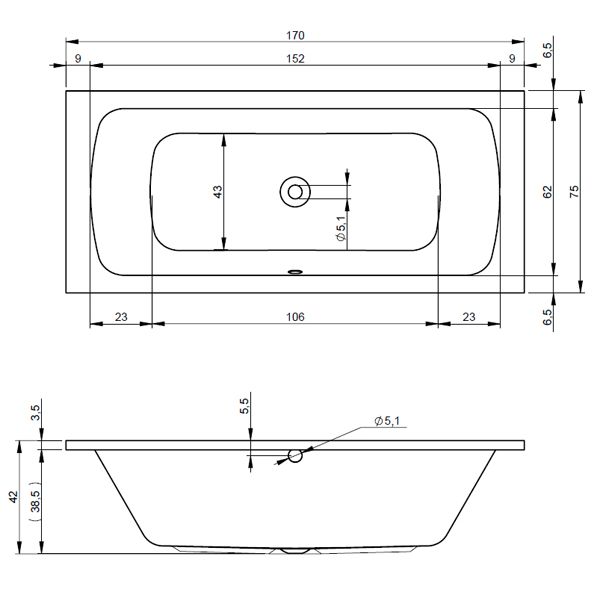 Акриловая ванна Riho Bari S 170x75 BB3500500000000 с лаконичным универсальным дизайном дополнит современные интерьеры ванных комнат.