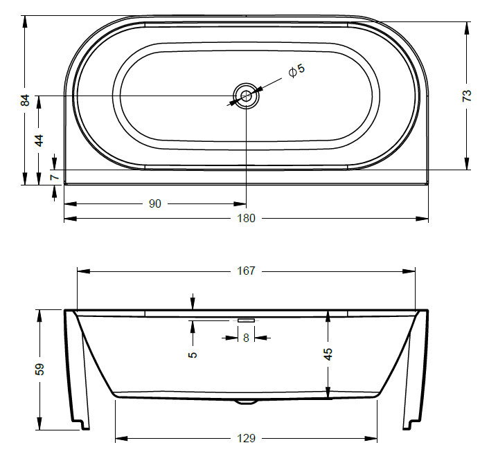 - Расположение слива: по центру.