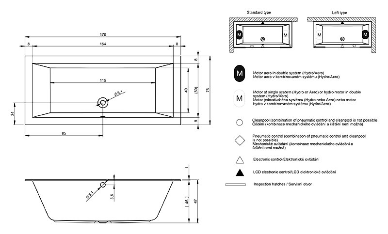 Акриловая ванна Riho Lugo 170x75 BT0100500000000 прямоугольная. Вместительная модель отлично дополнит большинство современных интерьеров.