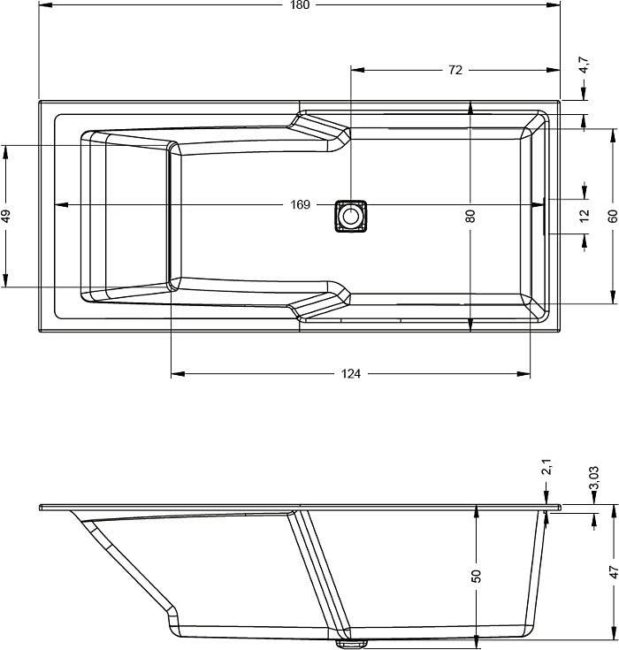 Акриловая ванна Riho Still Shower Elite 180x80 L BD1800500000000 - устанавливается к стене ванной комнаты.