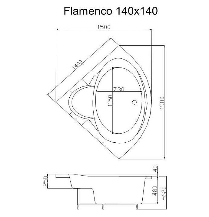 Victory Spa Flamenco 140 угловая акриловая ванна белого цвета. Ванна без системы управления. Дополнительно можно приобрести панели, алюминиевую раму, подводную подсветку, отделку форсунок хром.