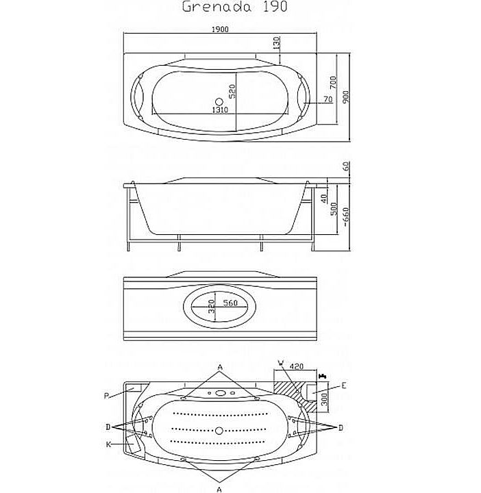 Victory Spa Grenada 190 OVS.480.910.00.1 акриловая ванна белого цвета. В стоимость ванны включены два подголовника, две боковых и одна фронтальная панель, полуавтоматический слив-перелив. Ванна без системы управления. Дополнительно можно приобрести слив-перелив с наполнением, смеситель.