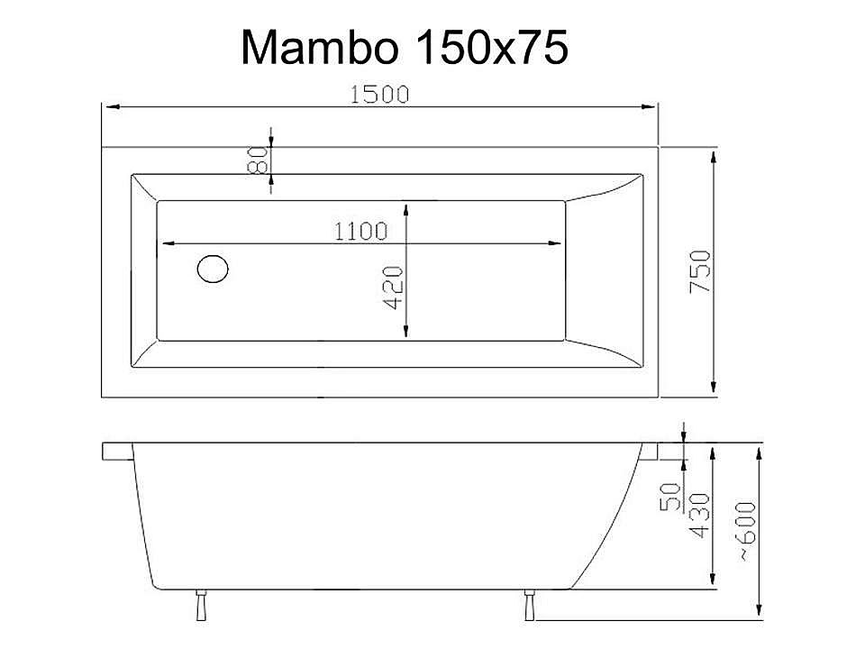 Victory Spa Mambo 150 акриловая прямоугольная ванна белого цвета. Ванна без системы управления. Дополнительно можно приобрести панели, алюминиевую раму, подголовник, подводную подсветку, отделку форсунок хром.