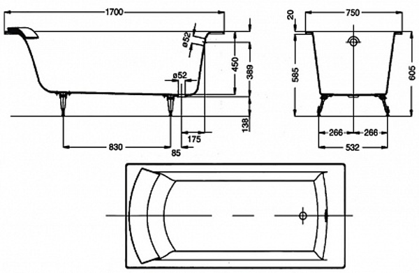 Чугунная ванна Jacob Delafon Biove 170x75 E2930-S-00 без антискользящего покрытия