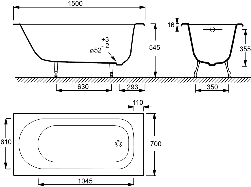 - Смягченные углы с внутренней стороны чаши ванны облегчают уход.