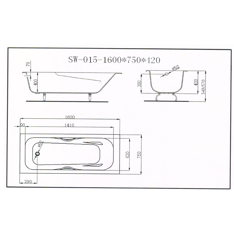 - габариты ванны (ДШВ): 160x75x57. Глубина чаши: 42 см