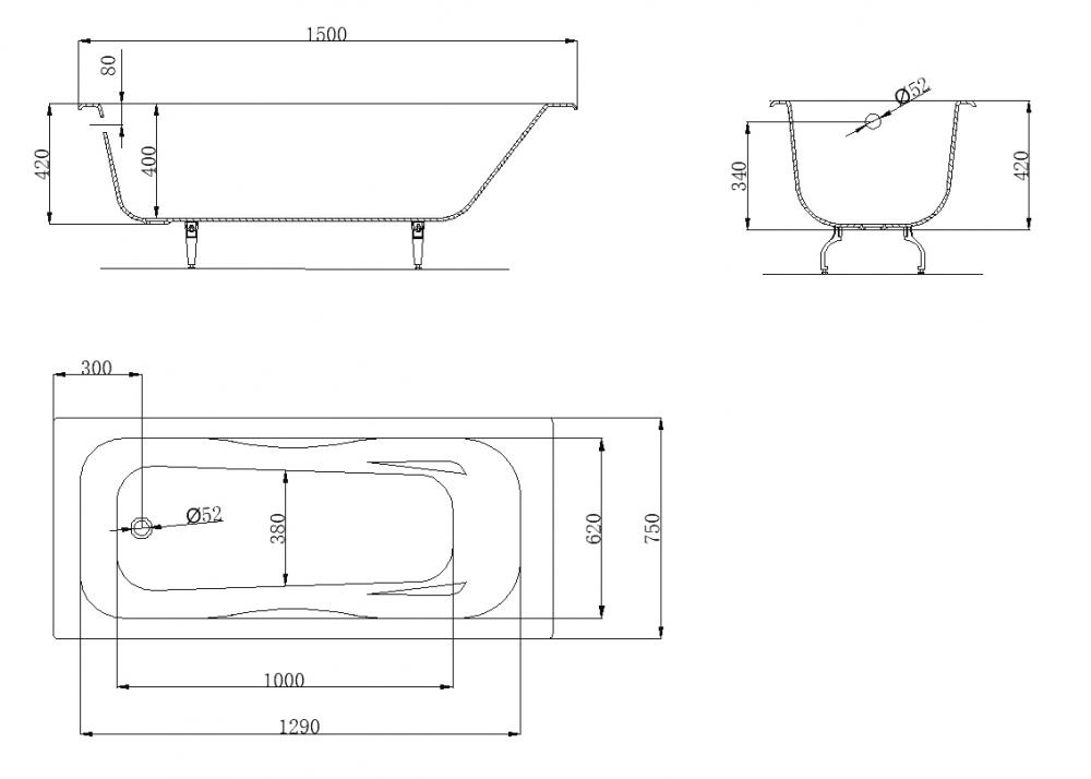 - Размер ванны: 150х75х56.5 см.