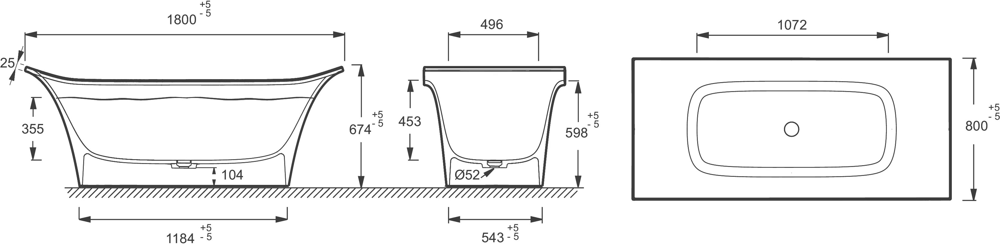 - Диаметр слива: 5,2 см.