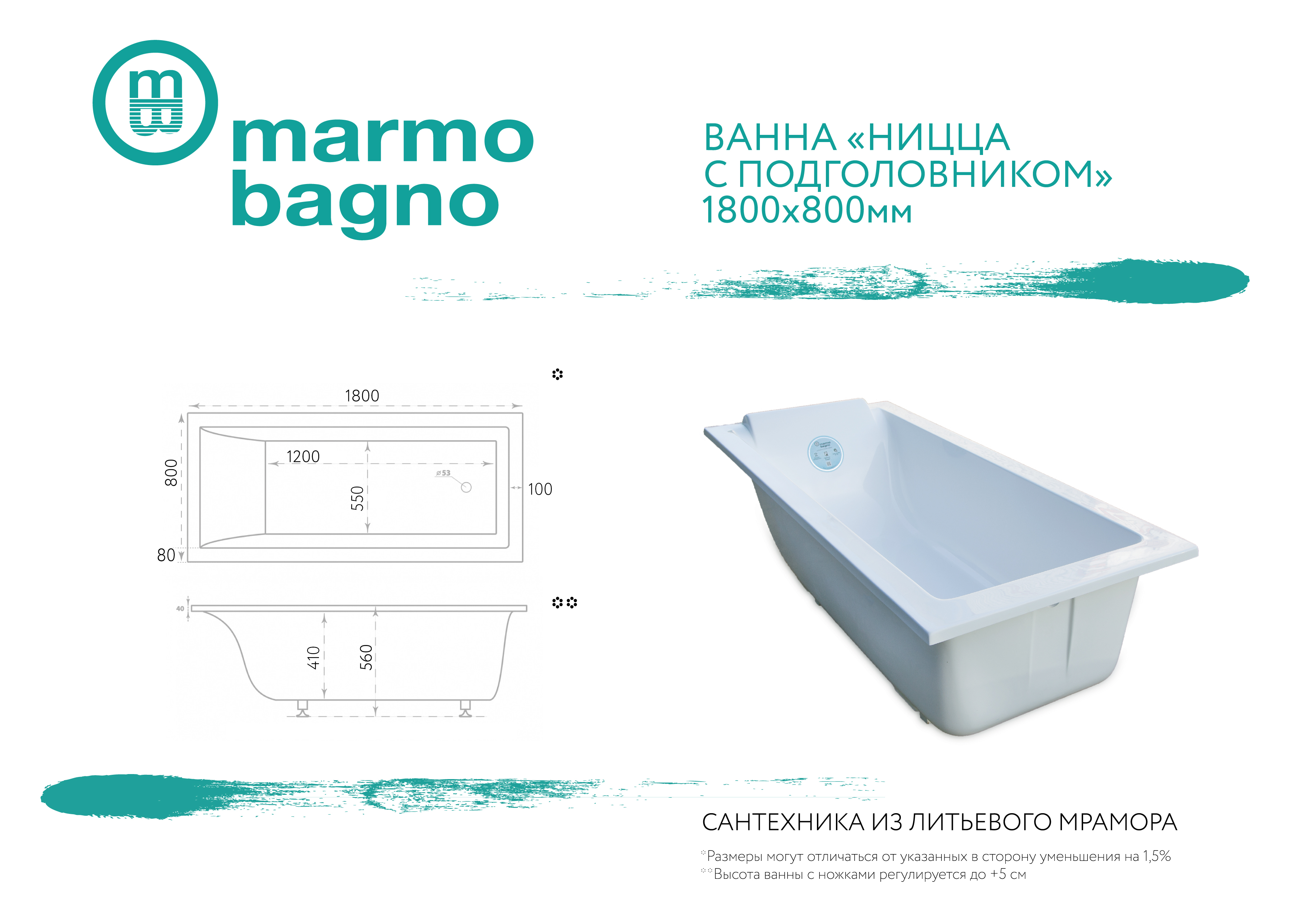 Ванна из литьевого мрамора Marmo Bagno Ницца 180x80 MB-NP180-80 с подголовником - великолепная эргономичная ванна создаст гармонию и уют в ванной комнате. Ванна производится из высококачественных экологически чистых материалов. Из-за отсутствия микропор, изделие обладает высокой бактериальной устойчивостью к впитыванию различных цветных жидкостей.