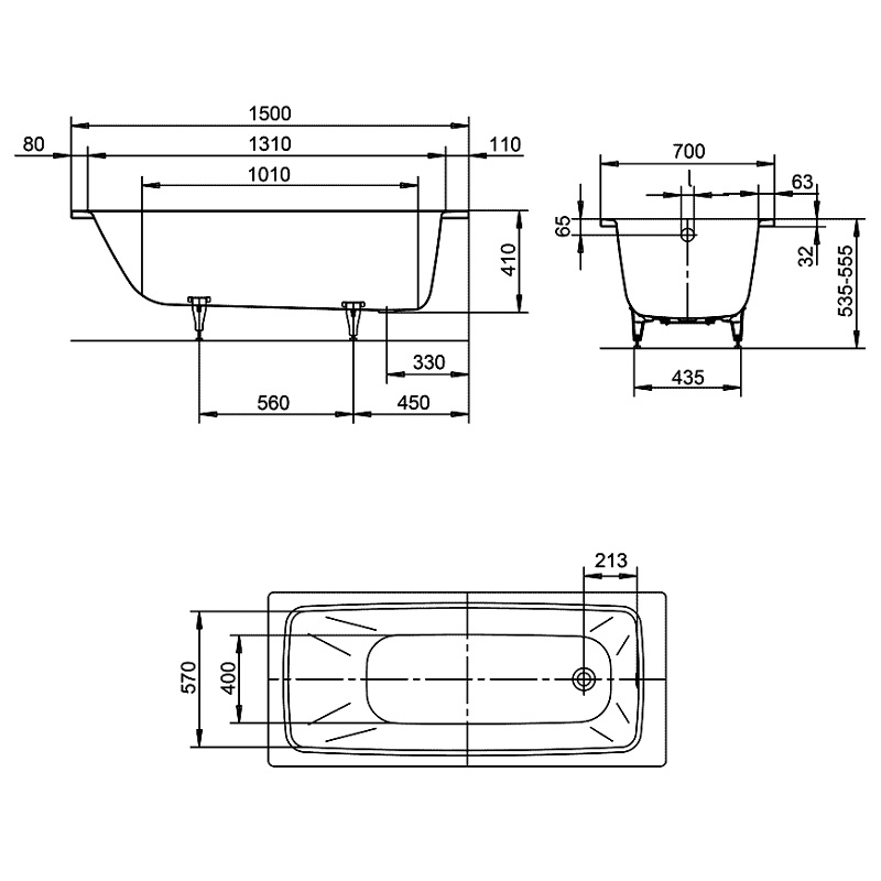 - Ванна выполнена из уникального материала: сталь-эмали. Это сочетание стали и стекла, совмещающее в себе лучшие качества обоих компонентов. Высокая твердость защищает ее от царапин, бытовых повреждений и перепадов температур, что продлевает срок службы изделия.