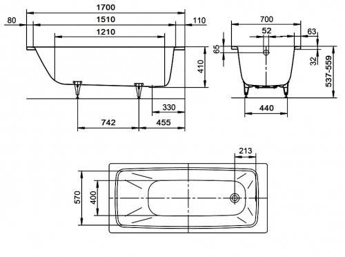 Стальная ванна Kaldewei Cayono 749 170x70 без покрытия