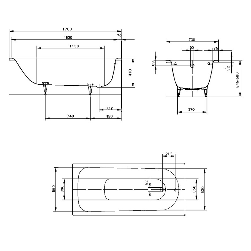 Стальная ванна Kaldewei Saniform Plus 170x73 112900010001 прямоугольной формы.
