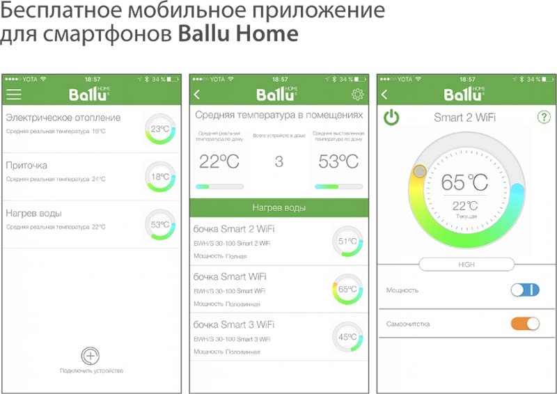 Накопительный электрический водонагреватель Ballu BWH/S 100 Smart WiFi НС-1127005 объемом 100 литров, с баком из нержавеющей стали. USB-разъем для подключения уникального модуля Wi-Fi для управления из любой точки мира через мобильное приложение Ballu. До 55 процентов экономии электороэнергии. Устройство защитного отключения. Универсальная установка: вертикальная или горизонтальная.