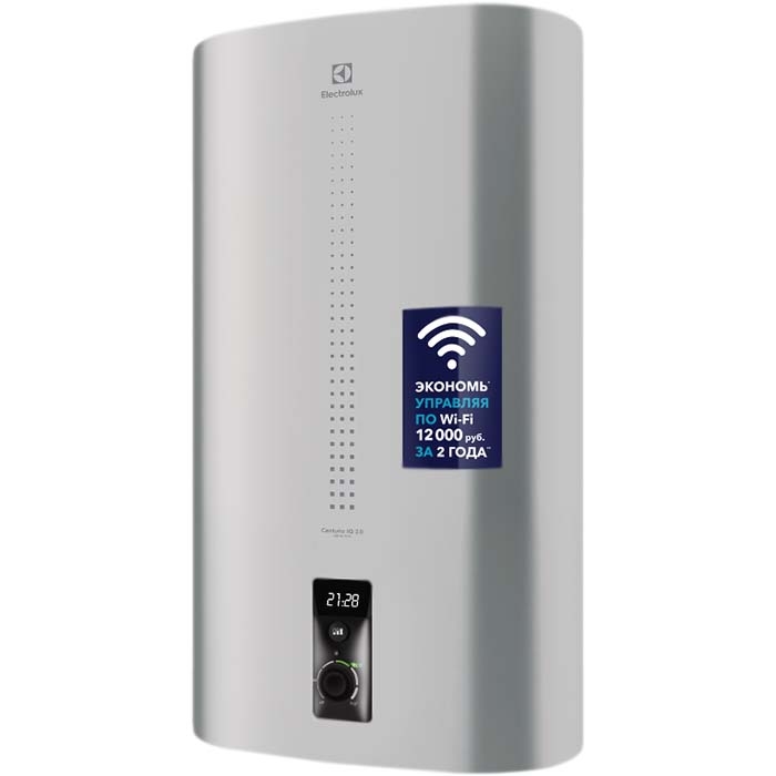 Электрический накопительный водонагреватель Electrolux EWH 50 Centurio IQ 2.0 Silver НС-1131389 емкостью 50 литров, с тремя режимами нагрева, с USB-разъемом для возможности удаленного управления прибором по сети Wi-Fi, что экономит до 55 процентов на энергопотреблении. ECO-режим защищает от накипи, обеззараживает воду и нагревает ее до комфортной температуры. Режим антизамерзания. Система X-Heat исключает контакт нагревательных элементов с водой, что продлевает их срок службы.