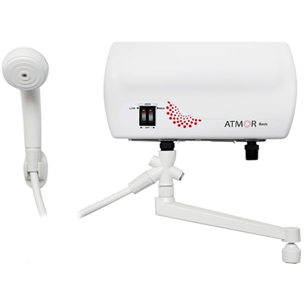 Проточный электрический водонагреватель Atmor Basic 5 3520066 в комплекте с душевой лейкой и краном. Оснащен защитой от перегрева и работы без воды. Компактные размеры и простой монтаж. Удобен для установки в ванной в качестве альтернативного источника горячей воды, либо в помещениях без возможности подключения к системе ГВС. Прост и надежен в эксплуатации.