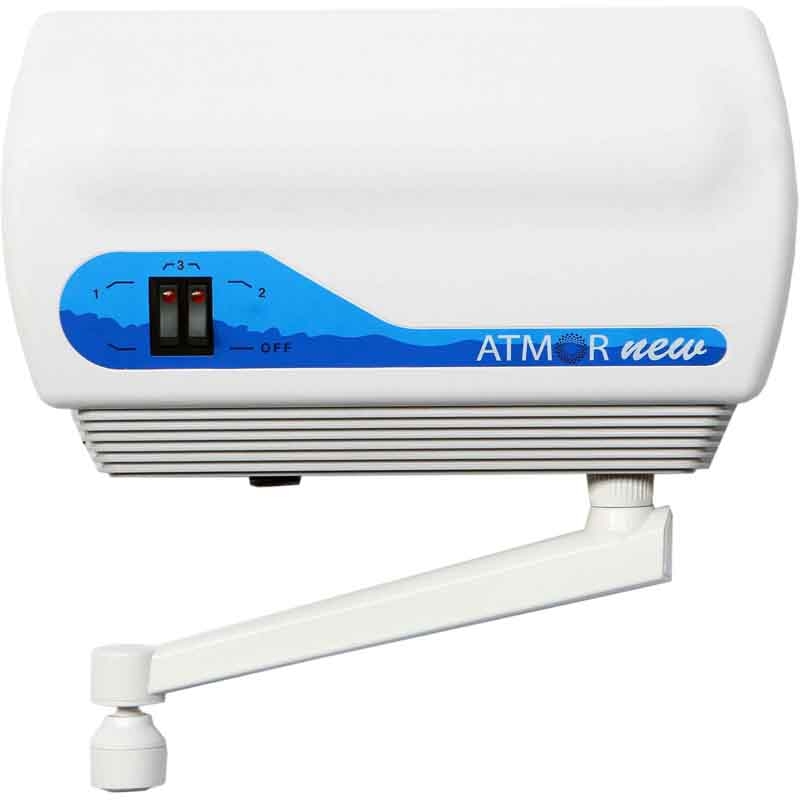 Проточный электрический водонагреватель Atmor New 5 3520206 в комплекте с краном (изливом). Оснащен защитой от перегрева и работы без воды. Компактные размеры. Прост и надежен в эксплуатации.