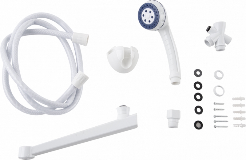 - душевая лейка, шланг, держатель лейки, смеситель,