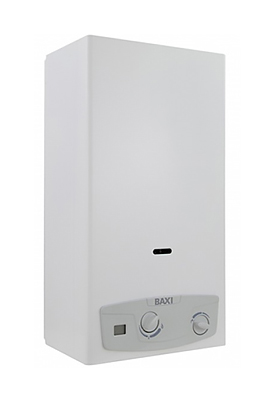 Настенный проточный газовый водонагреватель Baxi SIG-2 11p с открытой камерой сгорания и пьезоэлектрическим зажиганием. Мощность - 19 кВт. Производительность - 10,9 л/ мин. Максимальная температура нагрева воды - +60 °С. Дымоход - 100 мм. Габариты - 314x592x245 мм. Масса - 10,6 кг.